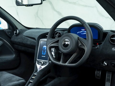 Weight gain is a side-effect of adding a retractable roof, however McLaren have managed to keep the weight gain to less than 4% on the 720S coupe. Unique glazed floating cantrails behind the two seats increase visibility, support the roof and help to direct airflow to cool the engine and increase downforce without raising the drag coefficient.