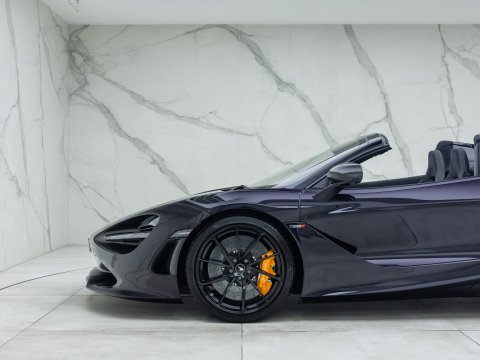 The McLaren 750s Spider is a new benchmark in performance and engagement, with a mid mounted engine for perfect weight distribution. The 750s has similar styling and aerodynamics to its predecessor, the 720s, but with upgrades such as the all-new central-exit Sports Exhaust system. There is also a new front bumper, front splitter and upgraded side air intakes to become more aerodynamically efficient and improve balance and grip.