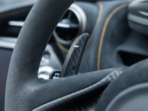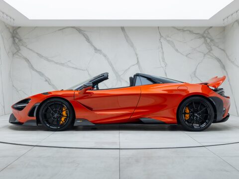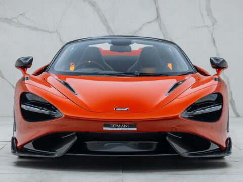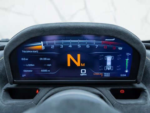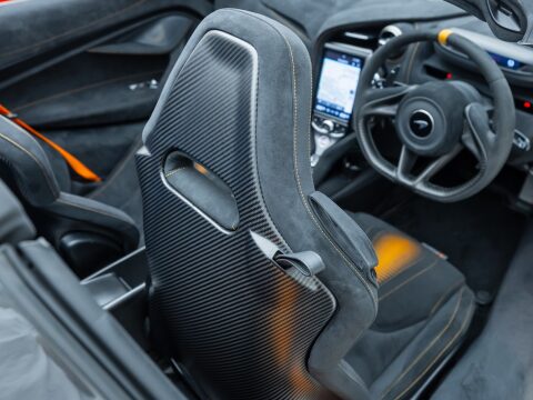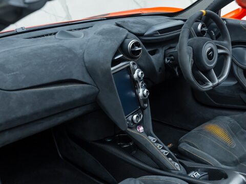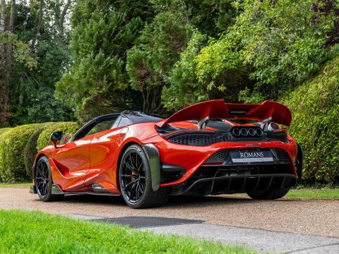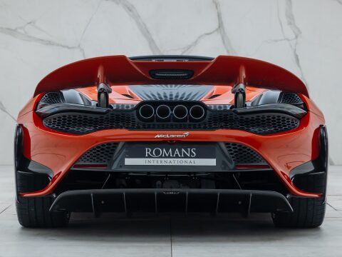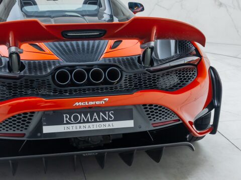 Performance is staggering: 755bhp, 0â62mph in 2.8 seconds, and an obsessive focus on weight reduction, including a polycarbonate rear window, carbon fibre components, and a quad-exit titanium exhaust that defines its presence and sound. Key components from the McLaren Senna including brake calipers and forged pistons underscore its serious intent. Visually, the 765LT is sculpted for aerodynamic efficiency and dramatic effect, with every curve and vent designed to serve function as much as form.