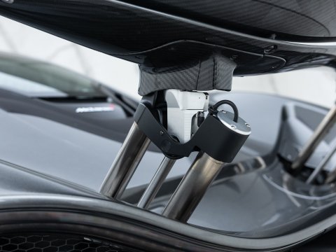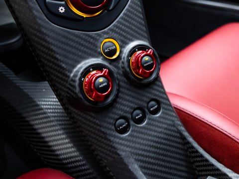 The chassis is a carbon fibre Mono-cage weighting in at 90kg. The brakes are carbon ceramics, the car has active aerodynamics (up to 600kg of downforce in Race mode) and each corner is controlled by McLaren's Race Chassis Control active dampers. Just like the current F1 cars, the P1 features Drag Reduction System (DRS) that stalls the rear wing to give more straight line performance as well as IPAS for more power.