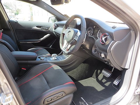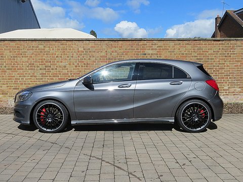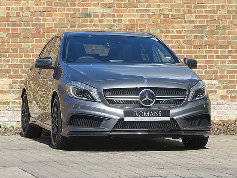 Romans are proud to offer this stunning 2014/14 Mercedes A45 AMG for sale presented in the colour of 'Mountain Grey' with Black Artico leather. This example comes with pretty much every extra imaginable and represents a decent saving off the list price.