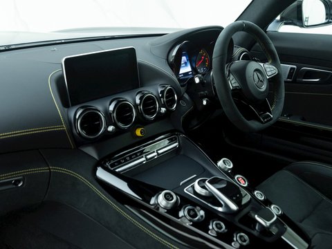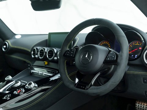 The GT R has several highlight unique features over the GT S variant including increased power to 577bhp, massive carbon fibre rear-wing to compliment the active aerodynamics and is also the first Mercedes-AMG to feature rear-axle steering. A new central dial labelled “TC” allows the driver to choose from the 11 different traction control settings, allowing the driver to build confidence and gradually explore the cars full potential, depending on experience and conditions.