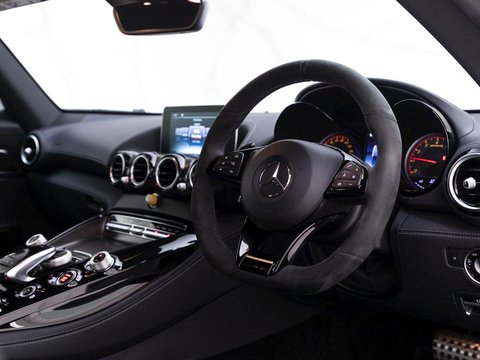 The GT R has several highlight unique features over the GT S variant including increased power to 577bhp, massive carbon fibre rear-wing to compliment the active aerodynamics and is also the first Mercedes-AMG to feature rear-axle steering. A new central dial labelled “TC” allows the driver to choose from the 11 different traction control settings, allowing the driver to build confidence and gradually explore the cars full potential, depending on experience and conditions.