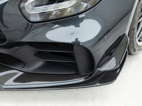 The Mercedes AMG GT R Pro is the next step up from the AMG GT R, having been given several upgrades in order to take the product of a well performing AMG GT R even further. New features have descended from the AMG GT3 and GT4 racing cars and entered into the development of the AMG GT R Pro, in order to further advance the track capabilities. Included in the additional features are re-designed front and rear carbon fibre diffusers with the front splitter being mounted by milled aluminium brackets, increasing downforce and aerodynamic efficiency. These additions allow the GT R Pro to lap the Nürburgring around 7 seconds faster than the AMG GT R, with a time of 7 minutes 4.6 seconds.