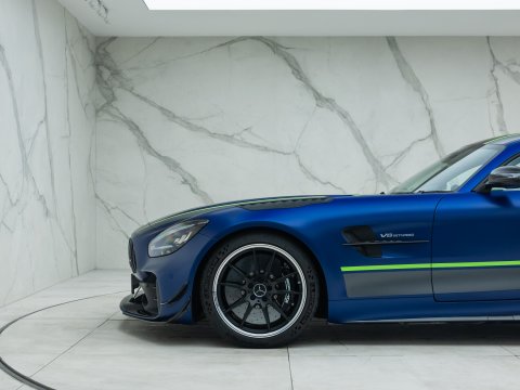 Built as a halfway house between the regular AMG GT R and the AMG GT Black Series, the limited edition GT R PRO was built in limited numbers with 750 produced worldwide and just 50 of these were believed to be UK supplied. Taking the already well honed AMG GT R new features haveĀ have descended from the AMG GT3 and GT4 racing cars and entered into the development of the AMG GT R Pro, in order to further advance the track capabilities.
