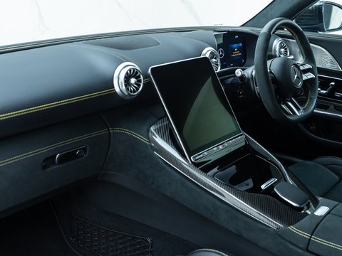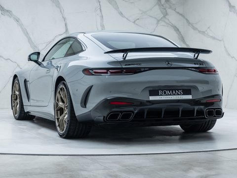 This particular car is a GT 63 Launch Edition, the highest-specification and rarest variant offered at launch. Designed to showcase the model in its most complete form, the Launch Edition comes as standard with AMG high-performance ceramic brakes with bronze calipers, 21-inch AMG cross-spoke forged alloy wheels in matte Techgold, the AMG Aerodynamics Package, Exterior Carbon Package and an upgraded interior trimmed in Nappa leather and MICROCUT microfibre.