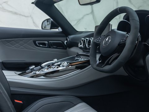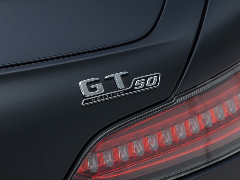 Built to celebrate AMG's 50th anniversary, the Mercedes AMG GT C Edition 50 Roadster is limited to just 500 examples worldwide. Coming in a choice of just two matte paints, Designo Graphite Grey Magno and Designo Cashmere White Magno, the car features black chrome exterior trim, headlight surrounds and a micro-suede wrapped steering wheel with 12 Oāclock accent in silver pearl. Other standout features include uniquely finished darkened chrome forged alloys and the diamond quilted exclusive Silver pearl leather.