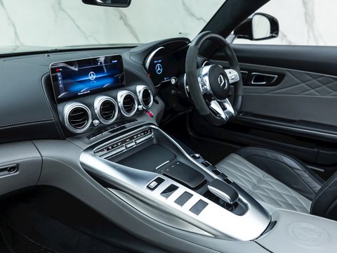The AMG GT C sits just in between the GT R and the GT S in terms of how hardcore a performance package it delivers. Borrowing the wider body work and track of the GT R and tuning the M178 engine to 550hp, this car really holds its own with some of the top performance super coupes in the world. The triple layer fabric roof can open in 11 seconds up to speeds of 31mph, to allow you to fully experience the intoxicating howl of that exquisite V8.
