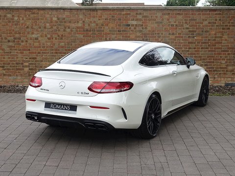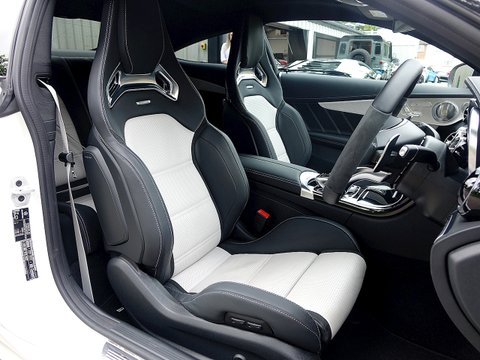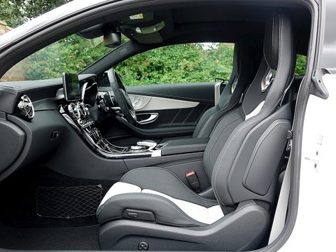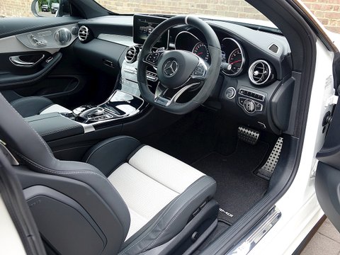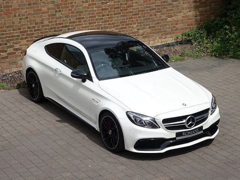 Romans are delighted to offer this wonderful 2016/66 Mercedes-AMG C63 S Coupe for sale presented in 'Designo Diamond White Bright' Special Paint with Two Tone Platin White Pearl Black Nappa Leather Interior. This C63 S Coupe comes with the all important Premium Package which includes the wonderful sounding Burmester Surround Sound System which must be one of the best sounding stereo systems in the automotive world. Supplied with Mercedes-Benz Manufacturer's Warranty until September 2019, this C63 S Coupe is one of the best 4 seat sports cars money can buy.Ā This C63 is the S version meaning it produces another 34 bhp more than the standard C63 Coupe. With a wonderful sounding brutal V8, the C63 S is the one car for all occasions, as at a push of a button it can be a 155 mph autobahn cruiser but put it into comfort mode and it can cruise all day long to the South of France with ease. With unrivalled luxury and comfort, it is no surprise that the C63 is one of our best-selling models and this example truly looks fantastic with the Two Tone Platin White Pearl Black Nappa Leather seats which contrasts beautifully with the special white exterior paint.