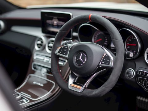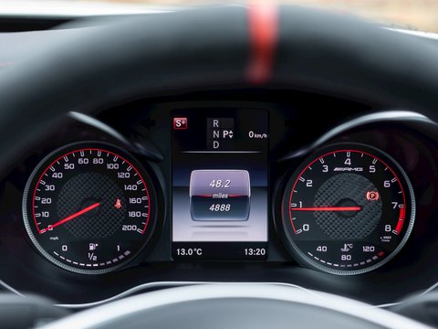 The C63 S Edition 1 features a host of highlighted extras including AMG performance seats, red exterior decals and special red aluminium carbon fibre interior trim, amongst other bespoke interior touches. Limited in the fact that it was only available for the first 12 months of production, the Edition 1 package ads the finishing details to what many would consider the ultimate small saloon. Building on the success of the previous C63, this new generation of the super 4-door C-Class features some profound changes. Gone is the 6.2L engine, replaced by a 4.0 twin-turbo charged āHot-Vā V8 offering substantially higher levels of torque and improved fuel economy to boot. A āHot-Vā configuration means the turbochargers are nestled inside the cylinder banks, giving better packaging options, a lower overall centre of gravity and more power from an engine shared with the AMG GT series.