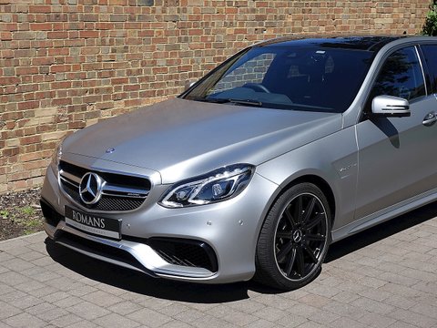 Romans are delighted to offer this stunning 2015/15 Mercedes E63 AMG for sale presented in 'Designo Magno Allanite Grey' special matt paint with Black Nappa Leather. This example comes with some lovely optional extras and representes exceptional value for money. Furthermore/, this vehicle is supplied with Mercedes-Benz Manufacturer's Warranty until March 2018.Our E63 is a unique car with the special £2/,315 matt paint separating it from other cars on the market. With a 5.5 litre bi-turbo V8 which produces 557bhp/, the E63 is one of the most engaging and fastest saloon cars on the market today.