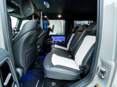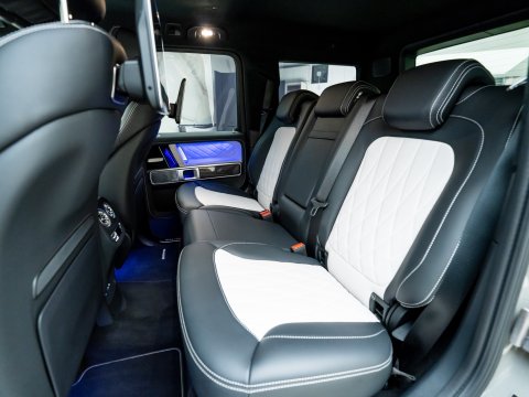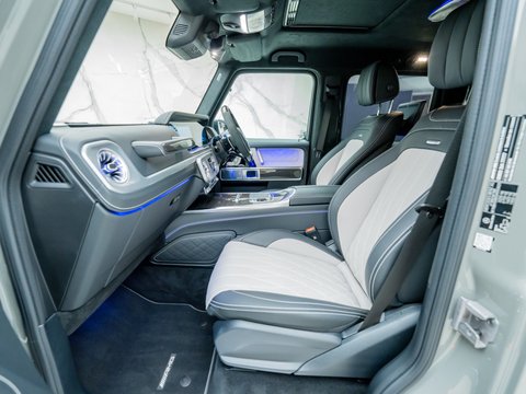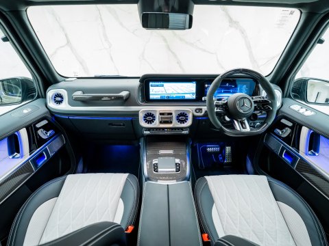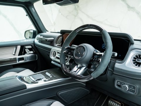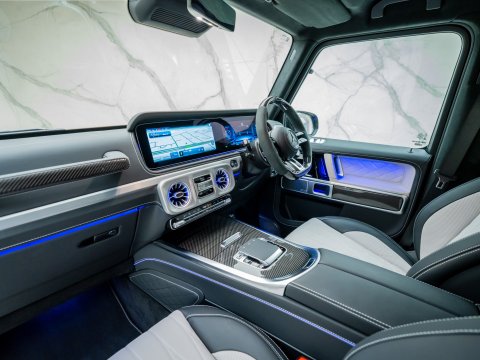 The 2024 Facelift G63 has received subtle design changes such as a more aggressive front bumper and new locations for parking cameras. The interior has also been upgraded, featuring the new generation AMG Performance steering wheel and Mercedes' latest MBUX infotainment and twin 12.3-inch screens, with the infotainment system now touchscreen. The biggest change to the 2024 G63 AMG is the new AMG Active Ride Control suspension system, replacing the previous suspension with a hydraulic system which allows for a more stable and smooth ride and overall a much more sure-footed handling experience than previous generations. The new suspension and software introduces two additional driving modes; AMG Traction PRO and AMG Active Balance Control.