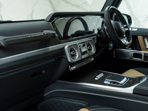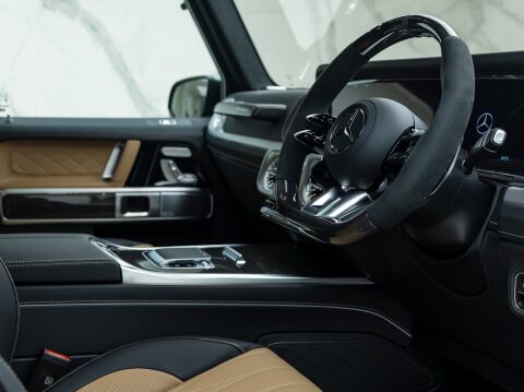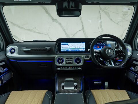 The 2024 Facelift G63 has received subtle design changes such as a more aggressive front bumper and new locations for parking cameras. The interior has also been upgraded, featuring the new generation AMG Performance steering wheel and Mercedes' latest MBUX infotainment and twin 12.3-inch screens, with the infotainment system now touchscreen. The biggest change to the 2024 G63 AMG is the new AMG Active Ride Control suspension system, replacing the previous suspension with a hydraulic system which allows for a more stable and smooth ride and overall a much more sure-footed handling experience than previous generations. The new suspension and software introduces two additional driving modes; AMG Traction PRO and AMG Active Balance Control.