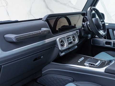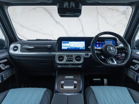 The 2024 Facelift G63 has received subtle design changes such as a more aggressive front bumper and new locations for parking cameras. The interior has also been upgraded, featuring the new generation AMG Performance steering wheel and Mercedes' latest MBUX infotainment and twin 12.3-inch screens, with the infotainment system now touchscreen. The biggest change to the 2024 G63 AMG is the new AMG Active Ride Control suspension system, replacing the previous suspension with a hydraulic system which allows for a more stable and smooth ride and overall a much more sure-footed handling experience than previous generations. The new suspension and software introduces two additional driving modes; AMG Traction PRO and AMG Active Balance Control.