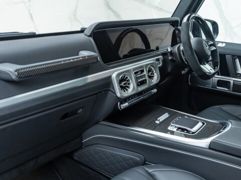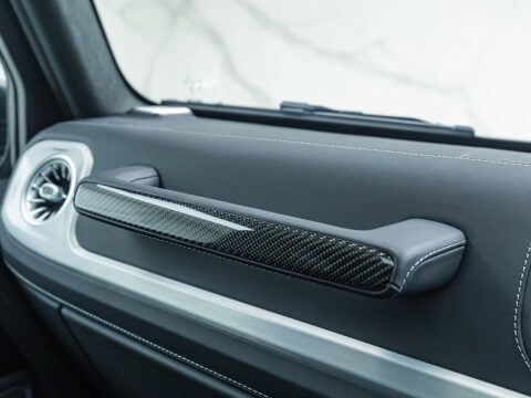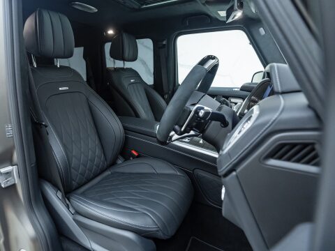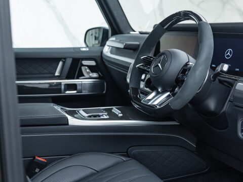 The 2024 Facelift G63 has received subtle design changes such as a more aggressive front bumper and new locations for parking cameras. The interior has also been upgraded, featuring the new generation AMG Performance steering wheel and Mercedes' latest MBUX infotainment and twin 12.3-inch screens, with the infotainment system now touchscreen. The biggest change to the 2024 G63 AMG is the new AMG Active Ride Control suspension system, replacing the previous suspension with a hydraulic system which allows for a more stable and smooth ride and overall a much more sure-footed handling experience than previous generations. The new suspension and software introduces two additional driving modes; AMG Traction PRO and AMG Active Balance Control.
