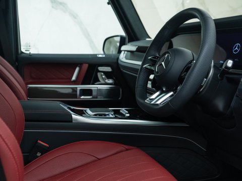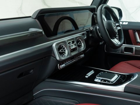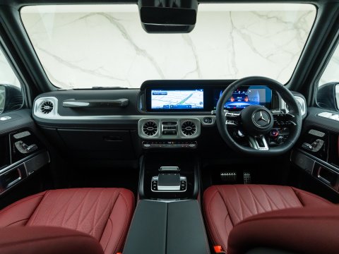 The 2024 Facelift G63 has received subtle design changes such as a more aggressive front bumper and new locations for parking cameras. The interior has also been upgraded, featuring the new generation AMG Performance steering wheel and Mercedes' latest MBUX infotainment and twin 12.3-inch screens, with the infotainment system now touchscreen. The biggest change to the 2024 G63 AMG is the new AMG Active Ride Control suspension system, replacing the previous suspension with a hydraulic system which allows for a more stable and smooth ride and overall a much more sure-footed handling experience than previous generations. The new suspension and software introduces two additional driving modes; AMG Traction PRO and AMG Active Balance Control.