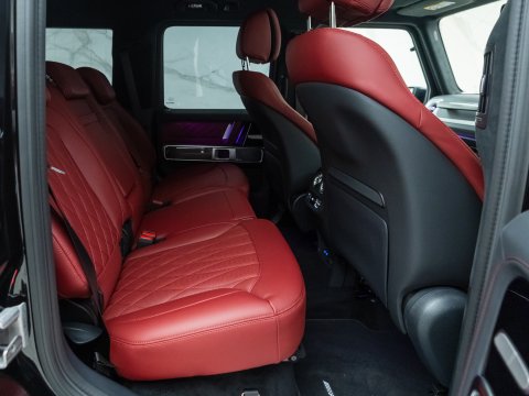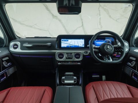 The 2024 Facelift G63 has received subtle design changes such as a more aggressive front bumper and new locations for parking cameras. The interior has also been upgraded, featuring the new generation AMG Performance steering wheel and Mercedes' latest MBUX infotainment and twin 12.3-inch screens, with the infotainment system now touchscreen. The biggest change to the 2024 G63 AMG is the new AMG Active Ride Control suspension system, replacing the previous suspension with a hydraulic system which allows for a more stable and smooth ride and overall a much more sure-footed handling experience than previous generations. The new suspension and software introduces two additional driving modes; AMG Traction PRO and AMG Active Balance Control.