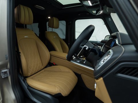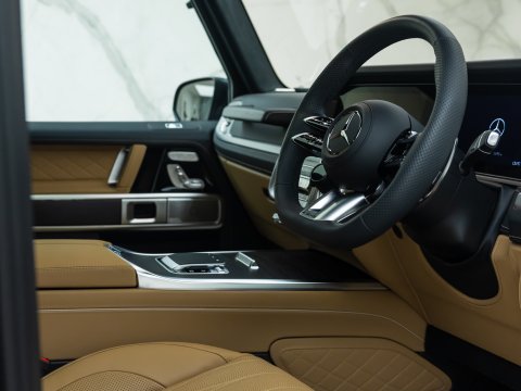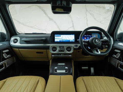 The 2024 Facelift G63 has received subtle design changes such as a more aggressive front bumper and new locations for parking cameras. The interior has also been upgraded, featuring the new generation AMG Performance steering wheel and Mercedes' latest MBUX infotainment and twin 12.3-inch screens, with the infotainment system now touchscreen. The biggest change to the 2024 G63 AMG is the new AMG Active Ride Control suspension system, replacing the previous suspension with a hydraulic system which allows for a more stable and smooth ride and overall a much more sure-footed handling experience than previous generations. The new suspension and software introduces two additional driving modes; AMG Traction PRO and AMG Active Balance Control.
