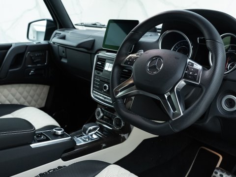 This particular example is an 'Edition 463'. The Mercedes-AMG G63 Edition 463 comes with an incredible 563 bhp, 26 bhp more than standard. Unique exterior features to the Edition 463 include a stainless-steel guard under the engine, 21" AMG alloys in a 5 Twin-Spoke Design and Protective Grilles for the headlamps. Step inside and the Edition 463 exclusively comes with the Carbon Fibre Trim, seats in high quality Designo Leather with Side Bolsters in Carbon Look Leather and Contrasting Topstitching, Driving Assistance Package, Entertainment Package, Winter Package, Door Centre Panels in a Diamond Design and Door Grab Handles in Nappa leather. Overall the 463 Edition advances the G63 in terms of power, luxury and exclusivity.