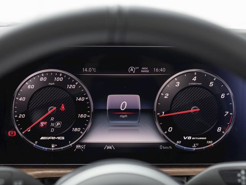 The latest G63 is not just a facelift or an engine change but the first time since it’s conception in the late 1970’s that the G-Class has been fully re-engineered from the ground up. To start with an updated ladder frame chassis helps to reduce overall weight whilst increasing stiffness and strength. The suspension and off-road system have been totally redesigned and now give a much more sure-footed handling experience, especially on the road in faster corners. And those corners will certainly be coming faster as under the bonnet lies the same 4.0L twin-turbo V8 found in the range topping AMG GT-R packing 577bhp. Running through Mercedes’ new 9-speed gearbox and multiple locking diffs to all 4-wheels; this power, extra gearing and traction means the new G63 will rocket from 0-60mph in 4.4 seconds and romp on to a top speed of 137mph (149mph with the AMG Driver’s pack). It is even capable of cutting 4 cylinders to return much more favourable mpg figures than the outgoing model, proving this car has the brains to match the brawn.