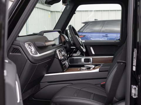 In terms of the exterior the new model is larger in every direction especially in width (nearly 5 inches) giving it a much more planted stance. This has helped with rear seat leg room, increased ground clearance and a deeper wading depth. In terms of exterior styling all the iconic features remain including the boxy shape, bonnet mounted indicators, exposed hinges and side exit exhaust, which continue to give this 4x4 a unique style and utilitarian charm. The new ingenious MULTIBEAM LED headlights are capable of recognising oncoming traffic and dipping the beam only for those sections, leaving the rest of the road fully lit, effectively allowing for constant high-beam use. Step inside using the retro door handles and stainless-steel runner boards, shutting the door with that satisfyingly solid clunk, and experience a vastly superior interior. Centre stage are two massive 12.3” screens, one for the instrument binnacle and one for the infotainment and COMMAND online system. Now sharing buttons and features with the S-class the interior has really been stepped up a level and completes a rather well sorted version of the new G-Class. Overall the new G-Class has upped its game in some key areas which include cabin quality and handling making it a real rival to the likes of the Range Rover Sport SVR & Porsche Cayenne Turbo.