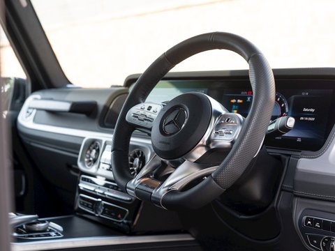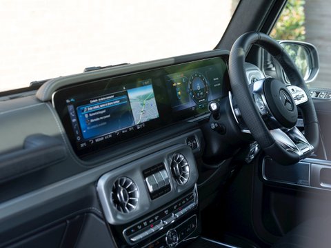 In terms of the exterior the new model is larger in every direction especially in width (nearly 5 inches) giving it a much more planted stance. This has helped with rear seat leg room, increased ground clearance and a deeper wading depth. In terms of exterior styling all the iconic features remain including the boxy shape, bonnet mounted indicators, exposed hinges and side exit exhaust, which continue to give this 4x4 a unique style and utilitarian charm. The new ingenious MULTIBEAM LED headlights are capable of recognising oncoming traffic and dipping the beam only for those sections, leaving the rest of the road fully lit, effectively allowing for constant high-beam use. Step inside using the retro door handles and stainless-steel runner boards, shutting the door with that satisfyingly solid clunk, and experience a vastly superior interior. Centre stage are two massive 12.3” screens, one for the instrument binnacle and one for the infotainment and COMMAND online system. Now sharing buttons and features with the S-class the interior has really been stepped up a level and completes a rather well sorted version of the new G-Class. Overall the new G-Class has upped its game in some key areas which include cabin quality and handling making it a real rival to the likes of the Range Rover Sport SVR & Porsche Cayenne Turbo.