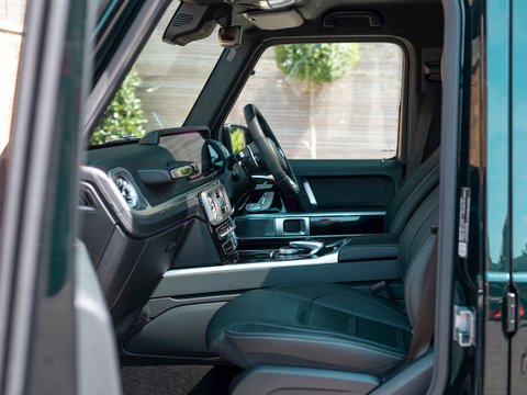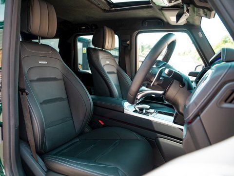 In terms of the exterior the new model is larger in every direction especially in width (nearly 5 inches) giving it a much more planted stance. This has helped with rear seat leg room, increased ground clearance and a deeper wading depth. In terms of exterior styling all the iconic features remain including the boxy shape, bonnet mounted indicators, exposed hinges and side exit exhaust, which continue to give this 4x4 a unique style and utilitarian charm. The new ingenious MULTIBEAM LED headlights are capable of recognising oncoming traffic and dipping the beam only for those sections, leaving the rest of the road fully lit, effectively allowing for constant high-beam use. Step inside using the retro door handles and stainless-steel runner boards, shutting the door with that satisfyingly solid clunk, and experience a vastly superior interior. Centre stage are two massive 12.3” screens, one for the instrument binnacle and one for the infotainment and COMMAND online system. Now sharing buttons and features with the S-class the interior has really been stepped up a level and completes a rather well sorted version of the new G-Class. Overall the new G-Class has upped it’s game in some key areas which include cabin quality and handling making it a real rival to the likes of the Range Rover Sport SVR & Porsche Cayenne Turbo.