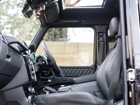 This example has had extensive Brabus upgrades accumulating to just over £82,555 over and above the standard G63. Highlight Brabus upgrades include the £16,501 Brabus 700 (B63S) Performance Kit. This performance kit comprises of 2 Brabus special turbochargers with a larger compression unit, Brabus Gold heat reflection for intake and boost pressure pipes, Brabus software for the engine control unit and more. Ultimately, this raises the power output to 700 bhp from the previous 544 bhp. Torque has also gone up to 708 lb ft of torque from 560 lb ft of torque. 0 to 62 mph time has dropped to 4.9 seconds from the previous 5.4 seconds.