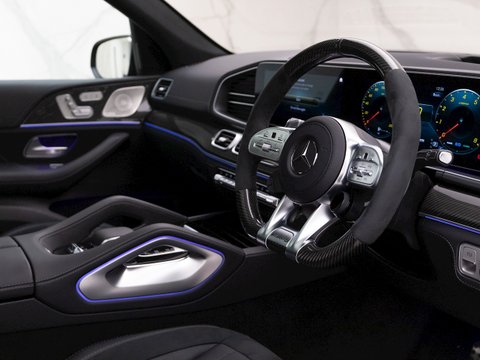The bodywork has been designed in typical AMG fashion with the large slatted front grille and large front bumper intakes. This example is the Night Edition Executive which adds desirable features such as the AMG Carbon Fibre Trim, AMG Driver’s Package and black trim to the exterior. The Mercedes-AMG GLS does it all, a complete package of power, practicality and multi-terrain performance.