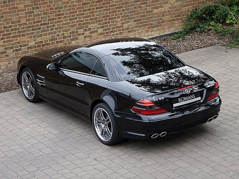 Romans are proud to offer this stunning 2005/05 Mercedes SL55 AMG for sale presented in 'Obsidian Black' Metallic with Black Designo Leather. This car has just undergone a full service from Mercedes-Benz less than 200 miles ago. Furthermore/, this particular example comes with the Performance Pack which includes the 19" SL65 style AMG split rim alloys/, additional oil cooler/, SL65 AMG front bumper/, upgraded composite brakes/, limited slip differential top speed de-restricted to 186mph.