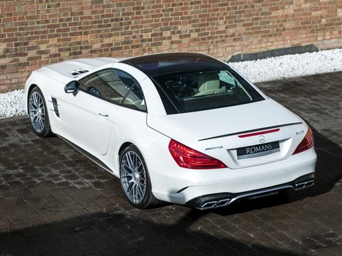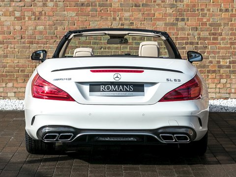 Romans are delighted to offer this outstanding 2017/17 Mercedes-AMG SL63 for sale presented in 'Designo Diamond White' Metallic with Ginger Beige/Espresso Brown Leather Interior. This 1 owner example comes with a fantastic specification including the £10,025 Carbon Ceramic Brakes, the £3,030 AMG Exterior Carbon Fibre Package and the £1,150 Harman Kardon Logic 7 Surround Sound System. A truly fantastic car that is supplied with Mercedes-Benz Manufacturer's Warranty until March 2020.