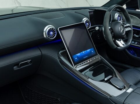 The latest Mercedes-AMG SL 63 has been reimagined as more than just a glamorous roadster. With a genuine 2+2 seating layout, a fabric roof that reduces weight, and the reassurance of 4MATIC+ all-wheel drive, it blends everyday usability with all-weather capability in a way no SL has managed before.