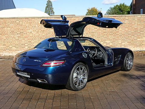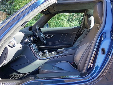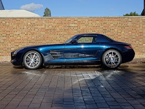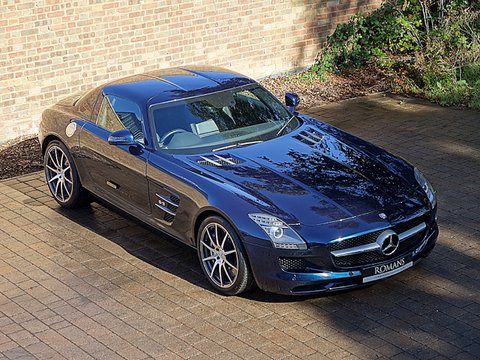Romans are proud to offer this exceptional 2011/60 Mercedes SLS AMG for sale presented in 'AMG Daytona Blue' with Black Single Tone Exclusive Leather Interior. This truly special example comes with a fantastic specification including the AMG Carbon Fibre Interior Package and Bang Olufsen Sound System and has to be one of the more spectacular SLS AMG's out there.