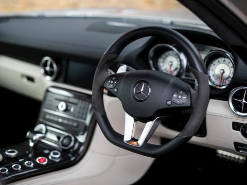 The SLS AMG has exquisite retro styling, long smooth lines and those iconic gullwing doors harking back to the 300 SL of yesteryear. Under that beautiful nostalgic bodywork, the SLS is the first car that AMG have been given a clean sheet to do as they please, rather than giving a standard Mercedes the āAMG Treatmentā, which always has its limitations. Being front-engined gives the SLS the advantage of having a reasonably sized boot, as well as being equipped with all the driver aids and comforts you would expect from a Mercedes-Benz. This future classic, with its naturally aspirated 6.2 Litre V8, is considered to be highly collectible and a worthy addition to any great car collection.