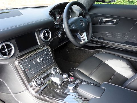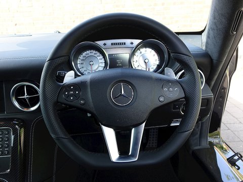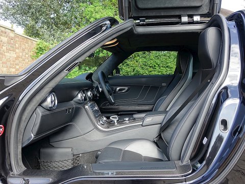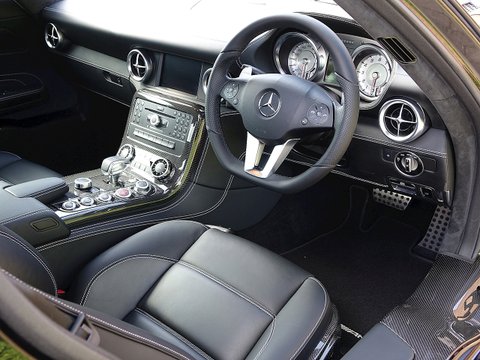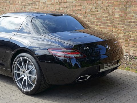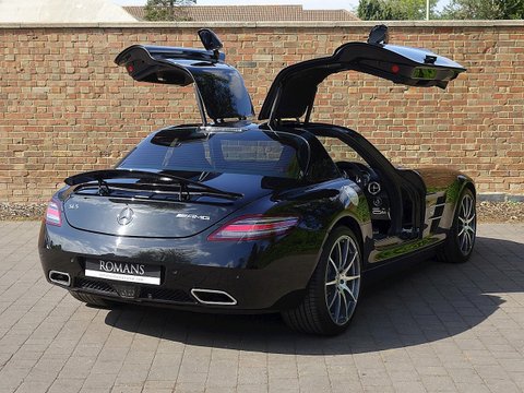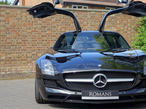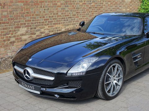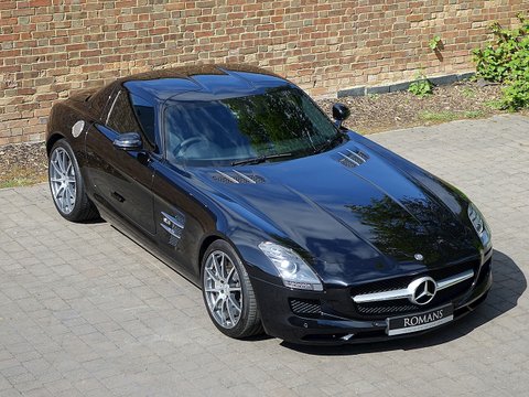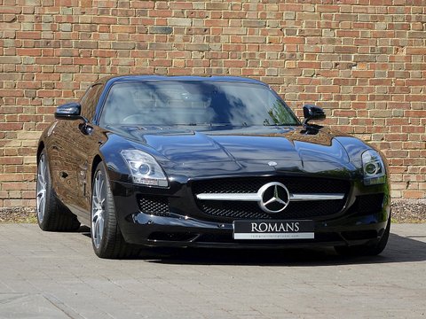 Romans are delighted to offer this immaculate 2012/12 Mercedes SLS AMG for sale presented in 'Obsidian Black' with Single-Tone Designo Black Leather. This fine low mileage example has a fantastic specification including the £5/,000 AMG Carbon Fibre Interior Package and more.With its naturally aspirated 6.2litre V8 engine along with the legendary gullwing doors inspired by the hugely sought after Mercedes 300 SL Gullwing/, the SLS has enjoyed a surge in value over the last couple of years. We believe this example to be in one of the best colour combinations and is presented in a wonderful condition.