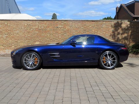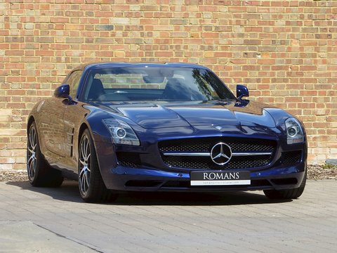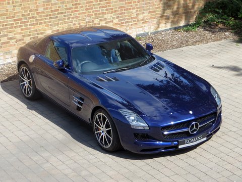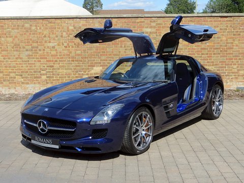 Romans are proud to offer this stunning 2011/60 Mercedes SLS AMG for sale presented in the special order paint 'Designo Mystic Blue' with a special order Designo Mauritius Blue Leather Interior. This beautiful 1 owner car comes with a fantastic specification and has to be one of the more spectacular SLS AMG's out there and a truly unique and special example. With a list price in excess of £215,000 this is quite possibly the most expensive SLS coupe built by AMG and the car is presented in totally original condition as it was built by the factory.