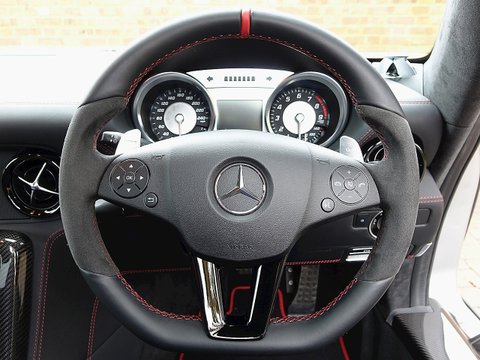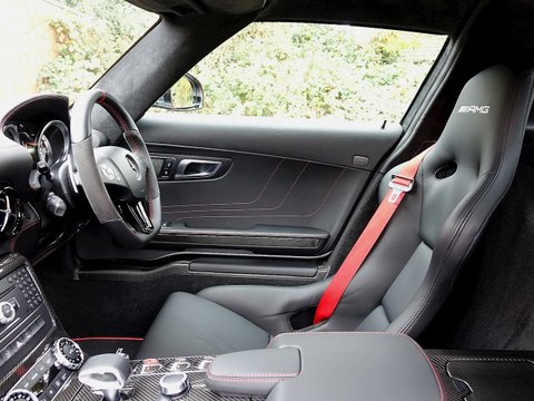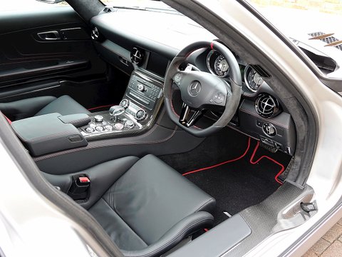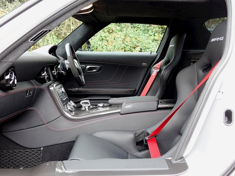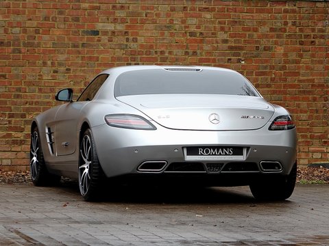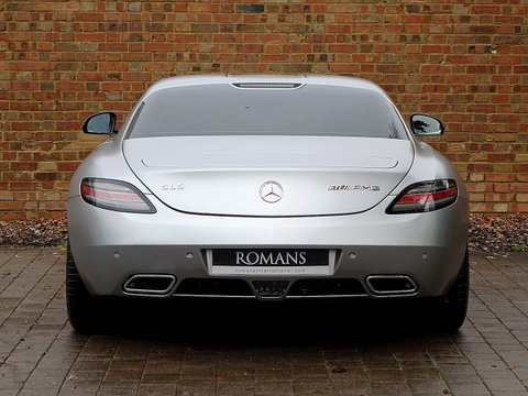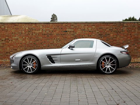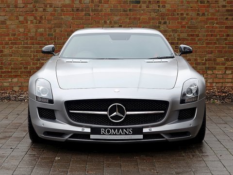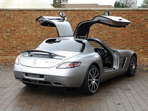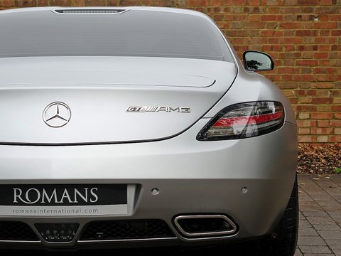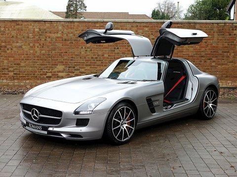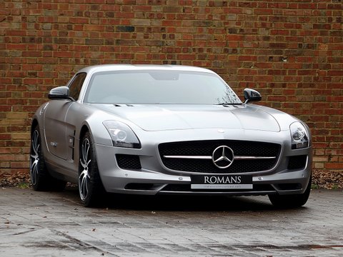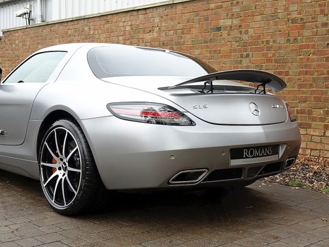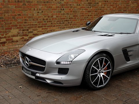 Romans are pleased to offer this exceptional 2013/63 Mercedes SLS AMG GT for sale presented in 'Designo Allanite Grey Magno' Special Matt Paint with Black Leather Interior. This vehicle comes with a fantastic specification including the all-important AMG Carbon Ceramic Brakes, AMG Interior Carbon Fibre Package and so much more. A fine example that is supplied with Mercedes-Benz Manufacturer's Warranty until November 2016.Key differences between the standard SLS AMG and this version are that the GT comes with various performance upgrades. These include a larger intake manifold helping to increase power by 20bhp to 583bhp. This means the 0 to 62mph acceleration time has decreased by 0.1 seconds to 3.7 seconds and Mercedes have reworked the software that controls the seven-speed dual clutch gearbox to help make shifts faster.The suspension has been firmed up by 30 percent at the front and rear, while adaptive dampers have been stiffened up too. Unlike the standard car you can't select a comfort mode for them, with the choices limited to Sport and Sport+. Finally, Mercedes have completed the package with GT badging on the boot lid and darker lenses for the headlights and taillights.