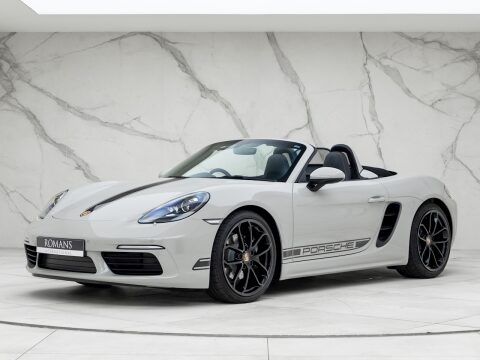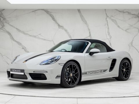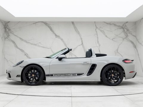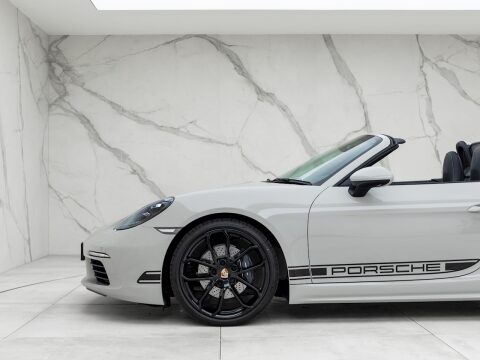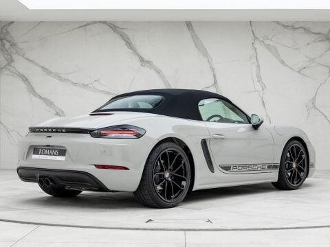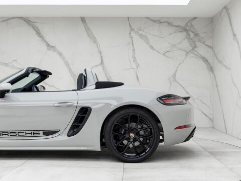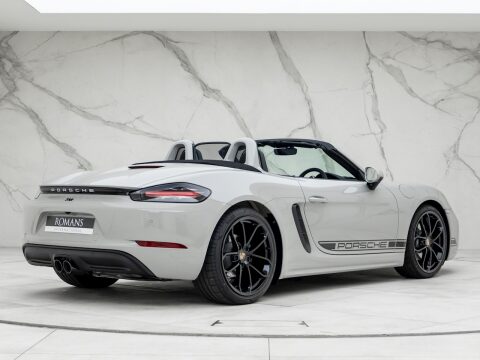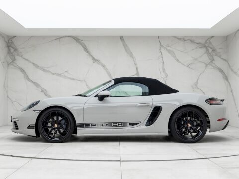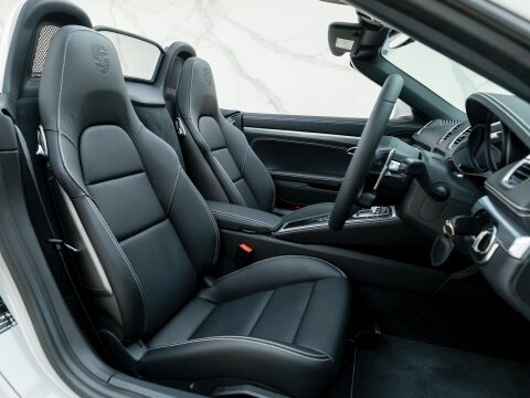 This particular example is a 718 Style Edition includes extended standard equipment that upgrades the interior with additional leather, contrast stitching and the model 'Boxster' embossed onto the fabric roof. The Boxster Porsche Style Edition allows unlimited creativity for the customer with high-contrast design highlights throughout the interior and exterior with the sporty racing stripe and decals. The Style Edition also recieves the 718 Boxster Spyder Wheels which were previously a limited feature to the respective model.