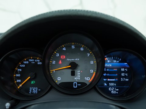 With the small dimensions and immense handling carried over from the GT4 RS, the Spyder RS has been dialled back ever so slightly in terms of the rawness of the GT4 RS to make the car a bit more road friendly with softer suspension but losing none of the attributes of that high-revving visceral noise delivered from the engine that sits closely behind you.