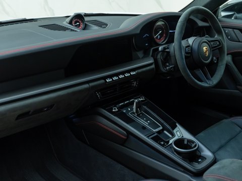 The 911 GTS variant is often seen as the "sweet spot" in Porsche's lineup, and the 992 GTS perfectly bridges the gap between the standard 992 Carrera and the more powerful 992 Turbo. The 992 4 GTS benefits from advanced technology borrowed from the 992 Turbo S, including its suspension and braking systems, which enable it to handle the increased performance with ease. With an extra 30 bhp over the Carrera S, the 4 GTS can rocket from 0 to 62 mph in just 3.3 seconds, thanks to its all-wheel-drive system, and it reaches a top speed of 192 mph. Despite being twin-turbocharged, the engine’s 7,400 rpm redline remains exhilarating to chase, with a soundtrack that fills the cabin and heightens the driving experience.