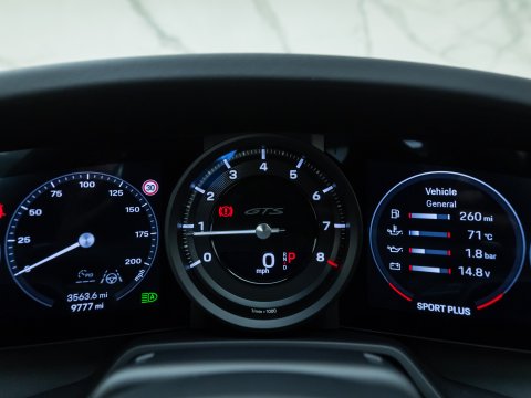 The 911 GTS is often considered the ‘sweet spot’ in the Porsche lineup, with the 992 GTS bridging the gap between the standard 992 Carrera and the more powerful 992 Turbo. The 4 GTS benefits from tech borrowed directly from the 992 Turbo S, including its suspension and brakes, which allows it to handle its higher performance levels with ease. With an additional 30 bhp over the Carrera S, the 4 GTS rockets from 0-62 mph in just 3.3 seconds, thanks to its all-wheel-drive system, and reaches a top speed of 192 mph. Despite its twin-turbocharged engine, chasing the 7,400 rpm redline is a thrilling experience, with a soundtrack that fills the cabin and adds to the excitement.