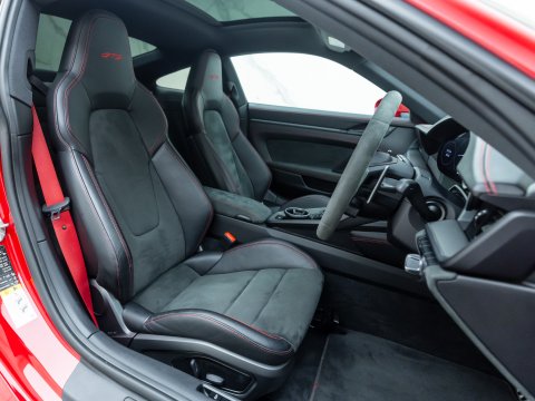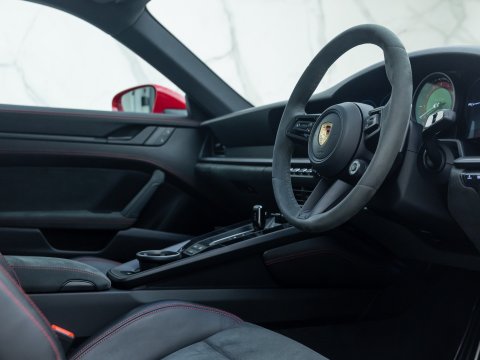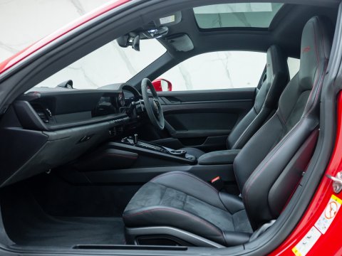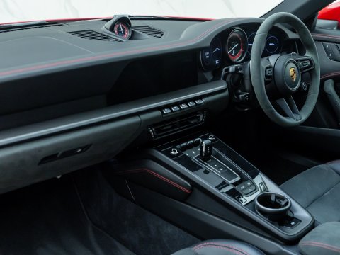The 911 Carrera GTS is often considered the ‘sweet spot’ in the Porsche lineup, with the 992 GTS bridging the gap between the standard 992 Carrera and the more powerful 992 Turbo. The Carrera 4 GTS benefits from tech borrowed directly from the 992 Turbo S, including its suspension and brakes, which allows it to handle its higher performance levels with ease. With an additional 30 bhp over the Carrera S, the 4 GTS rockets from 0-62 mph in just 3.3 seconds, thanks to its all-wheel-drive system, and reaches a top speed of 192 mph. Despite its twin-turbocharged engine, chasing the 7,400 rpm redline is a thrilling experience, with a soundtrack that fills the cabin and adds to the excitement.