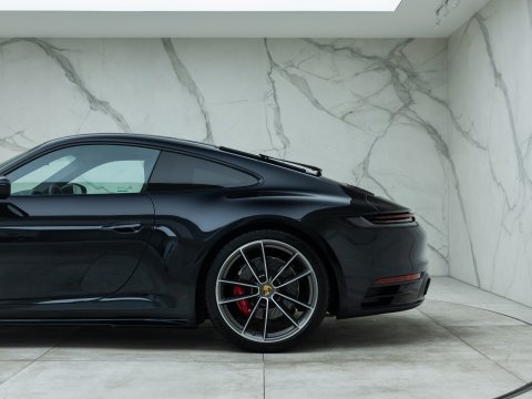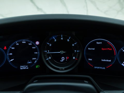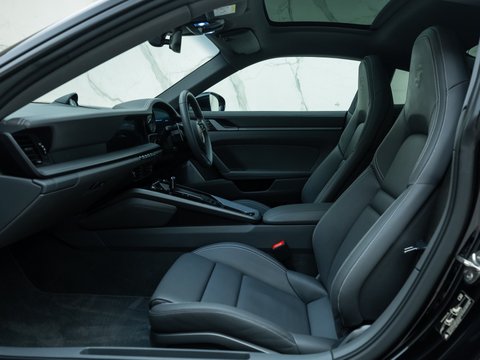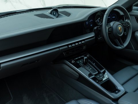 Power has been bumped up by 30 horsepower, with the 4S now delivering 444bhp, the same as the 991.2 GTS. This is paired with an 8-speed PDK transmission, launching the car from 0-60mph in just 3.4 seconds and reaching a top speed of 190mph. Inside, the cockpit has been thoughtfully redesigned, featuring an analogue rev counter flanked by 7ā TFT screens and a beautifully streamlined center console. The shift lever, knurled switches, and high-end materials throughout create an atmosphere of luxury and sophistication, making the cabin feel truly special.