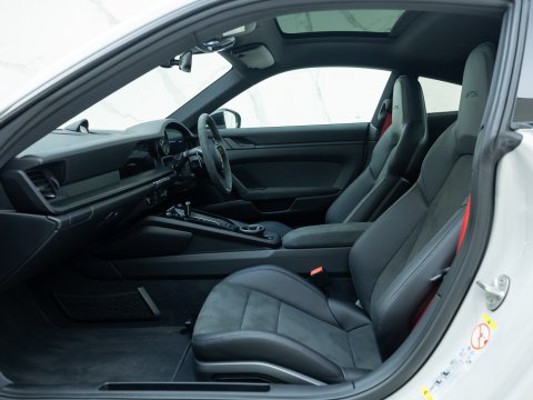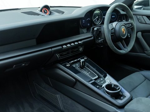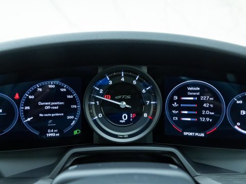 The GTS variant of the 911 range is frequently regarded as the ‘Sweet Spot’ Porsche, with the 992 GTS bridging the gap between the standard 992 Carrera and the 992 Turbo. The GTS employs technology from the 992 Turbo S such as the suspension and brakes, meaning that the car can cope with its higher performance figures over the other Carreras. Power is up 30 bhp over the Carrera S with a 0-62mph time delivered in 3.4 seconds with a top speed of 193mph. Despite being twin-turbocharged, chasing the 7400rpm redline is intoxicating, with ample noise pouring into the cabin, adding to the sense of occasion.