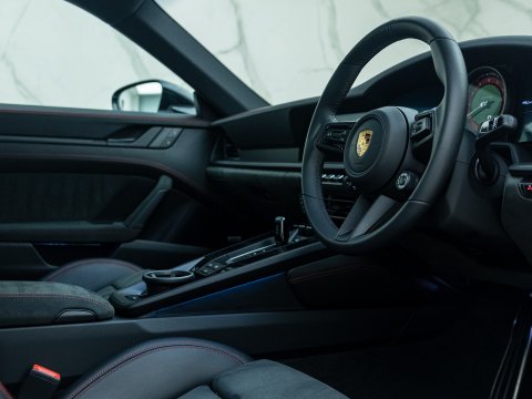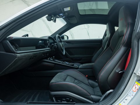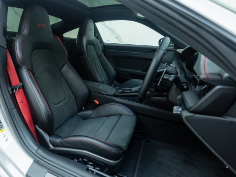 The GTS variant of the 911 range is frequently regarded as the ‘Sweet Spot’ Porsche, with the 992 GTS bridging the gap between the standard 992 Carrera and the 992 Turbo. The GTS employs technology from the 992 Turbo S such as the suspension and brakes, meaning that the car can cope with its higher performance figures over the other Carreras. Power is up 30 bhp over the Carrera S with a 0-62mph time delivered in 3.4 seconds with a top speed of 193mph. Despite being twin-turbocharged, chasing the 7400rpm redline is intoxicating, with ample noise pouring into the cabin, adding to the sense of occasion.