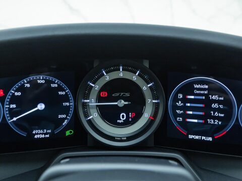 The GTS variant of the 911 range is frequently regarded as the ‘Sweet Spot’ Porsche, with the 992 GTS bridging the gap between the standard 992 Carrera and the 992 Turbo. The GTS employs technology from the 992 Turbo S such as the suspension and brakes, meaning that the car can cope with its higher performance figures over the other Carreras. Power is up 30 bhp over the Carrera S with a 0-62mph time delivered in 3.4 seconds with a top speed of 193mph. Despite being twin-turbocharged, chasing the 7400rpm redline is intoxicating, with ample noise pouring into the cabin, adding to the sense of occasion.