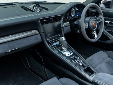 The 911 Carrera GTS is renowned as one of the most driver focused models in the range. It sits in between a regular Carrera S and the full blooded 911 GT3. Porsche has taken a regular Carrera S and gone to town on the performance upgrades, including; increased power by 30bhp, centrally locking alloy wheels, Porsche Active Suspension Management (PASM) with sports chassis (lowering the ride height by 20mm) and Sport Chrono which incorporates dynamic engine mounts and switchable sports exhaust system. Some changes that the 991.2 brings consists of an updated user interface, steering wheel and exterior styling. The rear-wheel drive convertible variant of the GTS is both engaging and practical, offering the option to connect with your surroundings by lowering the roof.