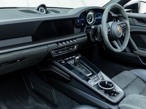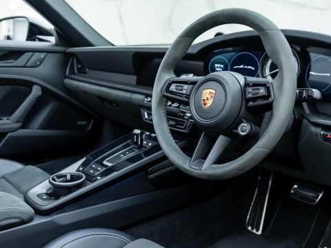 The GTS variant of the 911 range is frequently regarded as the ‘Sweet Spot’ Porsche, with the 992 GTS bridging the gap between the 992 Carrera S and the 992 Turbo. The GTS employs technology from the 992 Turbo S such as the suspension and brakes, meaning that the car can cope with its higher performance figures over the other Carreras. Power is up 30 bhp over the Carrera S with a 0-62mph time delivered in 3.4 seconds with a top speed of 193mph. Distinguished by its sportier suspension, distinctive exterior features, and refined interior, the GTS variants have become hugely sought-after both as a very useable daily driver and also for those seeking an intoxicating driving experience.
