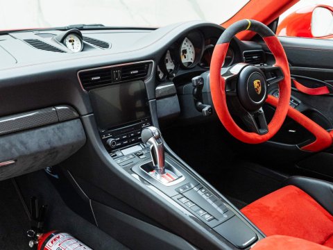The GT2 RS is one of the hottest cars on the market especially when specified with the hugely desirable Weissach Package. With an official Nurburgring production car lap record of 6 minutes 47.3 seconds; the GT2 RS was the king of the ring when it was released, but the pinnacle of the 911 family, being the most powerful example ever built. The 3.8L engine produces a scarcely believable 690 bhp, an astonishing 138 bhp increase over the 991 Turbo S, thanks to new larger turbochargers, a freer flowing titanium exhaust system and more aggressive mapping and boost pressures.