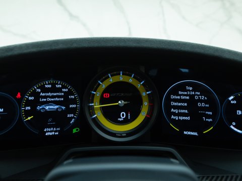 Lightweight construction and Porsche’s incredible attention to detail creates an unmatched handling capability, with notable and unique performance upgrades to the front suspension, making it the first of its kind in this 911 series. The 992’s airflow management has been optimized, alongside a drag-reduction system comparable to those in Formula 1 Race Cars, which activates above 62mph and 95% throttle and can also be activated via the DRS button on the steering wheel. Its simple interior layout pays homage to past iterations of Porsche’s classic sports car. Yet, it does not come without its own unique characteristics such as extra steering controls for adjusting the adaptive dampers and compression levels.